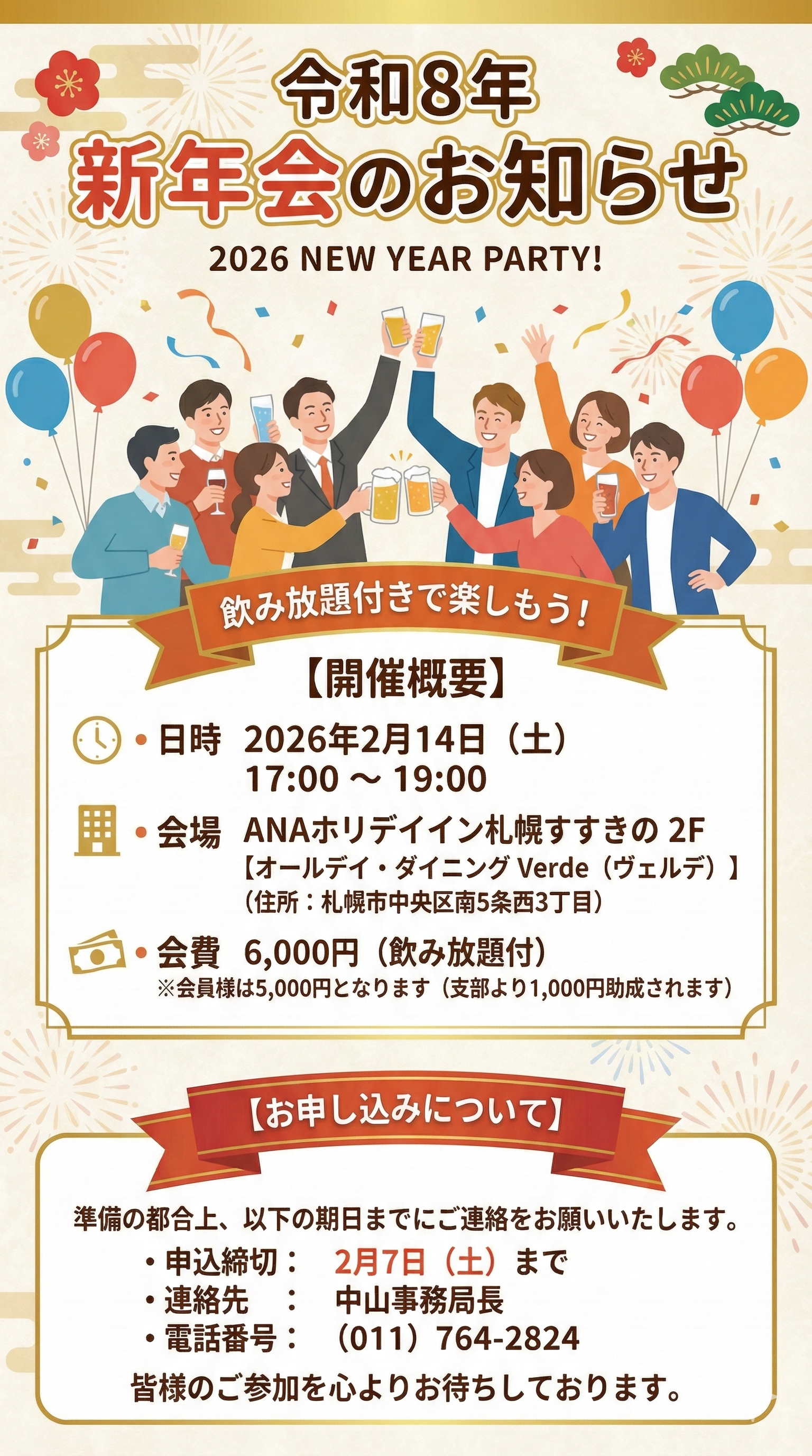 皆様、新しい年の始まりを共に祝い、親睦を深める「新年会」を開催いたします。